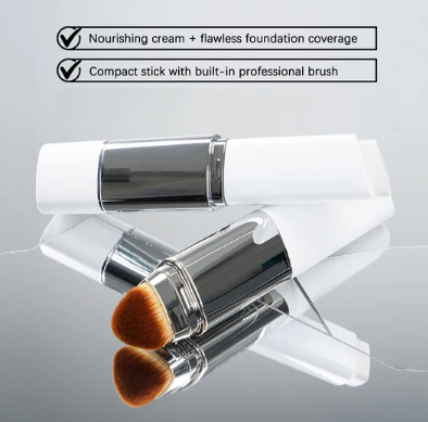 Combines the nourishing benefitsof cream with the coverage offoundation for a radiant, skin-likefinish. - Next-Level Portability-Compact stick design with built-inprofessional brush, perfect for on-the-go touch-ups.