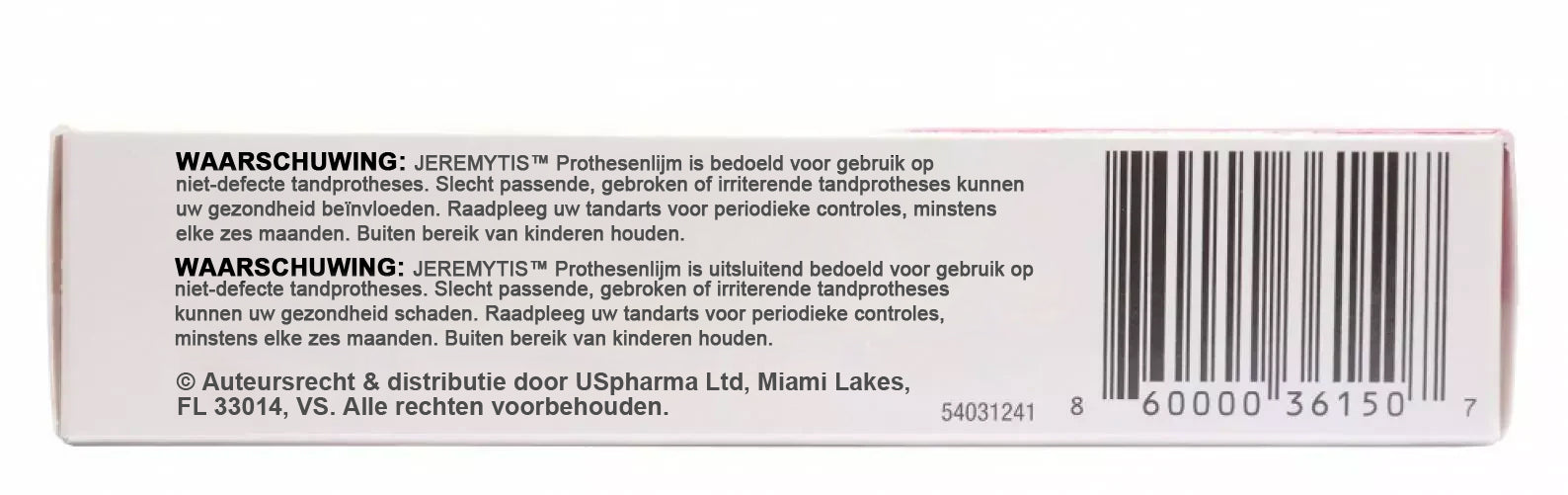 Bovendien bevat de unieke samenstelling van de JEREMYTIS hechting vochtvasthoudende eigenschappen die actief het tandvlees beschermen en hydrateren. Dit dubbele werkingsmechanisme stabiliseert niet alleen de gebitsprothese, maar bevordert ook een gezondere mondomgeving door wrijving en irritatie te verminderen.